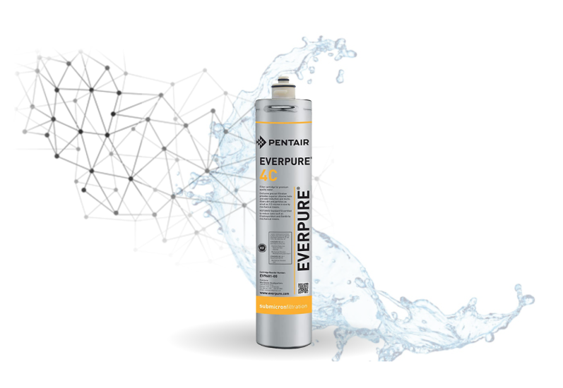 Filtrare mecanica - filtrul Everpure cu carbon activ, fabricat in US, certificat food grade, retine impuritatile, sedimentele pana la 0.5µ, elimina bacteriile, inlatura gustul si mirosul de clor, imbunatateste gustul apei si mentine mai mult timp nivelul de carbonatare in apa